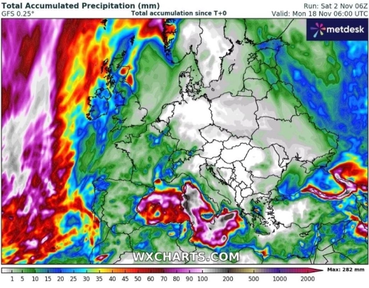 Изчезнаха всякакви надежди за дъжд и през ноември, поне според 240-часовите прогнози. До 18-ти ноември валежите се очаква да бъдат значително под нормата за този месец.