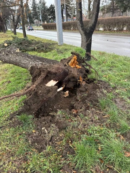 Има жилищни блокове и офиси с отнесени мазилки и изолации. Някои от високите борове по протежението на главната ул. „Юрий Гагарин“ паднаха върху сгради и автомобили.