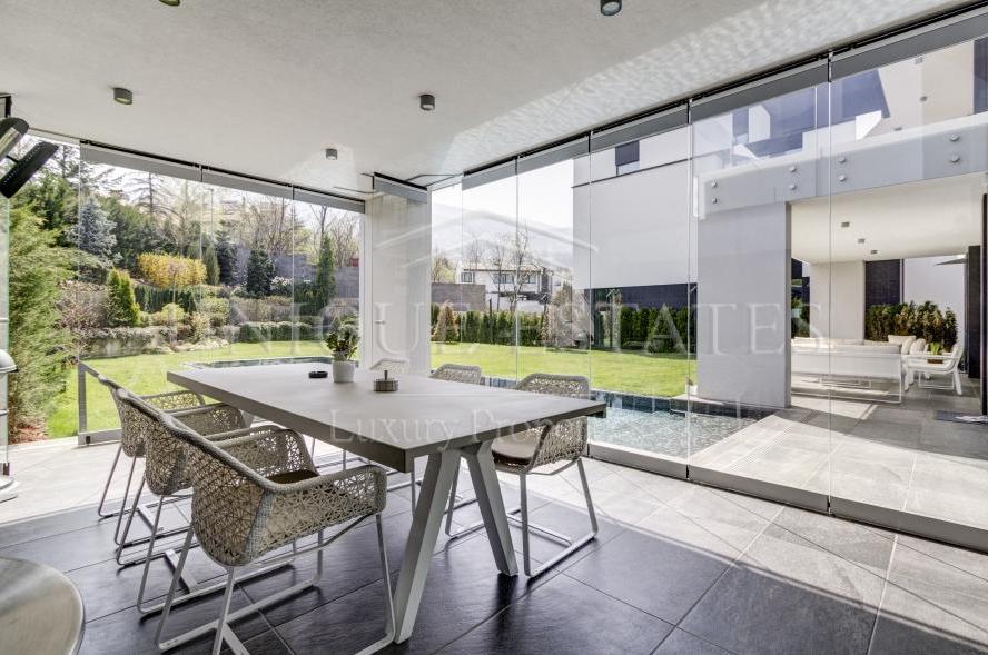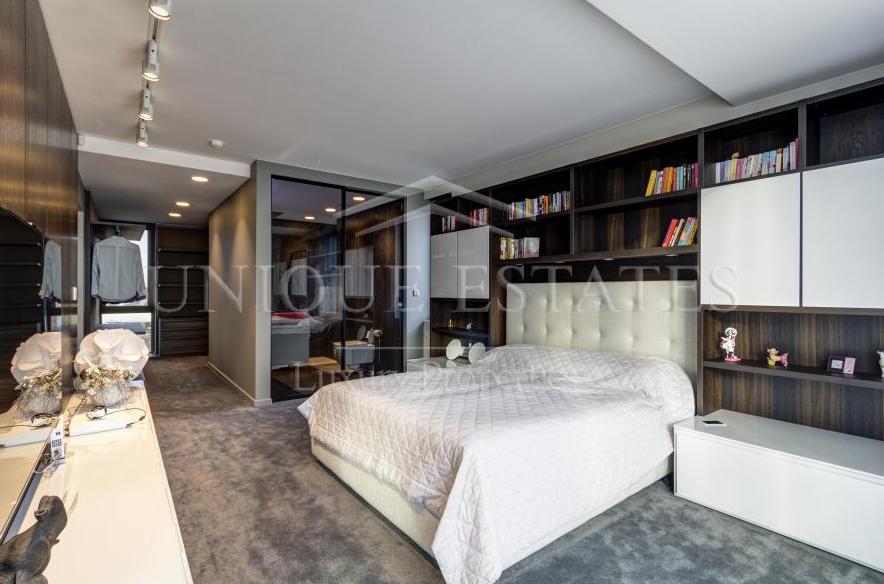 Третото ниво разполага с родителска спалня с уникална гледка, гардеробна и баня с тоалетна. Къщата е снабдена със система „Умен дом“, както и с уникална система за отопление, включваща собствен генератор. Вижте как изглежда имотът, предлаган на пазара на цена от 1.8 млн. евро от агенция Unique Estates: