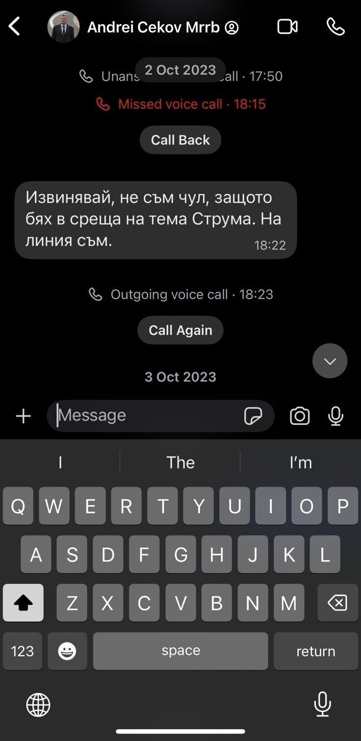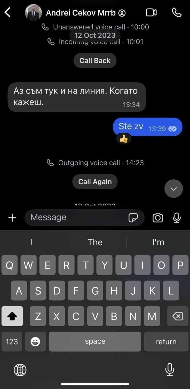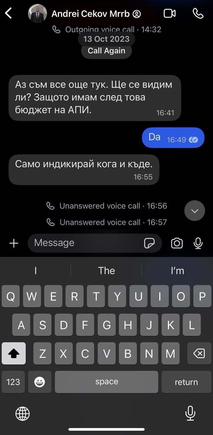 Лидерът на ДПС-Ново начало Делян Пеевски разпространи чатове с депутата ПП-ДБ Андрей Цеков, който бе министър на МРРБ в кабинета на Николай Денков.