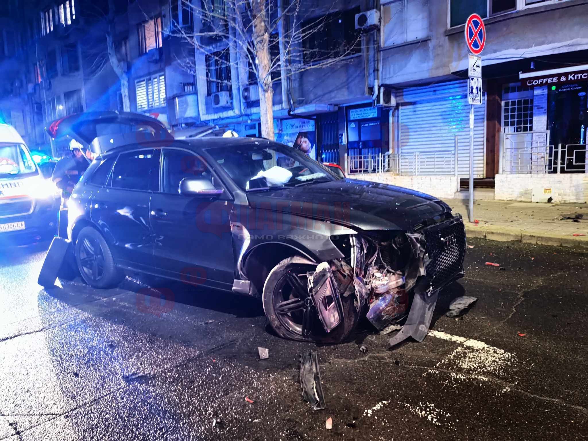 Джип „Ауди“ буквално размаза спортен автомобил на бургаската улица „Цар Симеон I“ при пътен инцидент, станал около 22:30 часа тази вечер, предава дежурният редактор на Флагман.БГ.
