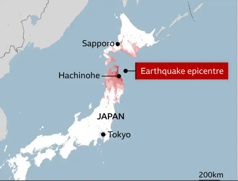 Японското правителство обяви, че все още се оценяват щетите от цунамито и земетресението, което разлюля Япония около 23:15 ч. местно време (16:15 ч. бълг. вр.). Епицентърът бе в Тихия океан, на около 80 километра от крайбрежието на Аомори.