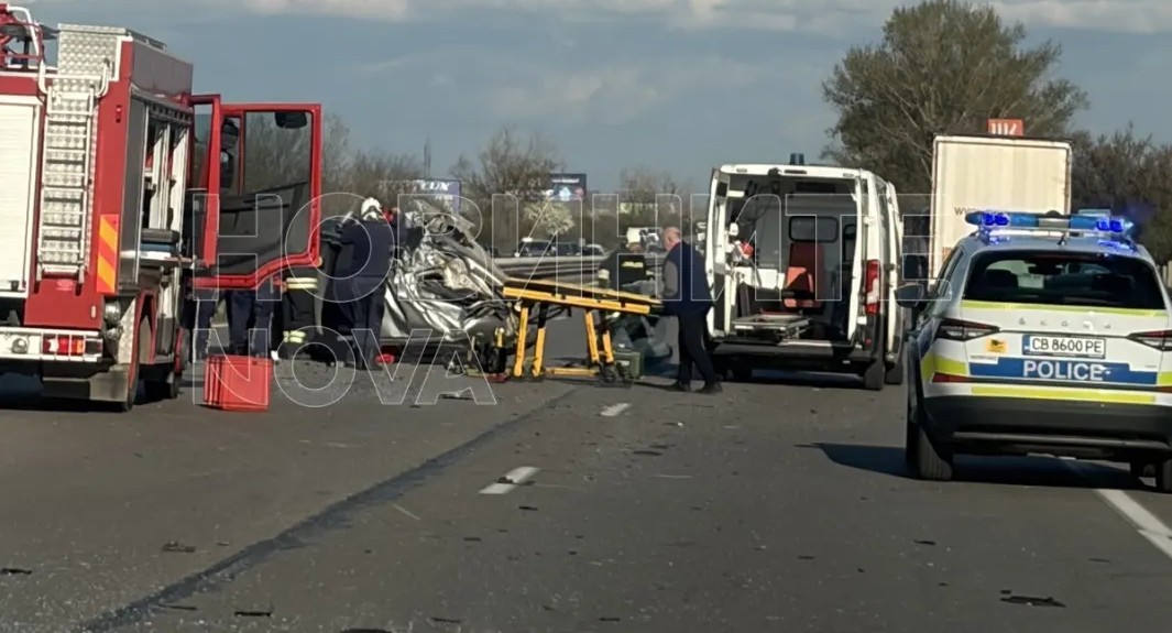 Извънредно! Тежка катастрофа блокира „Тракия”, хвърчат полиция, пожарна и линейка Снимки