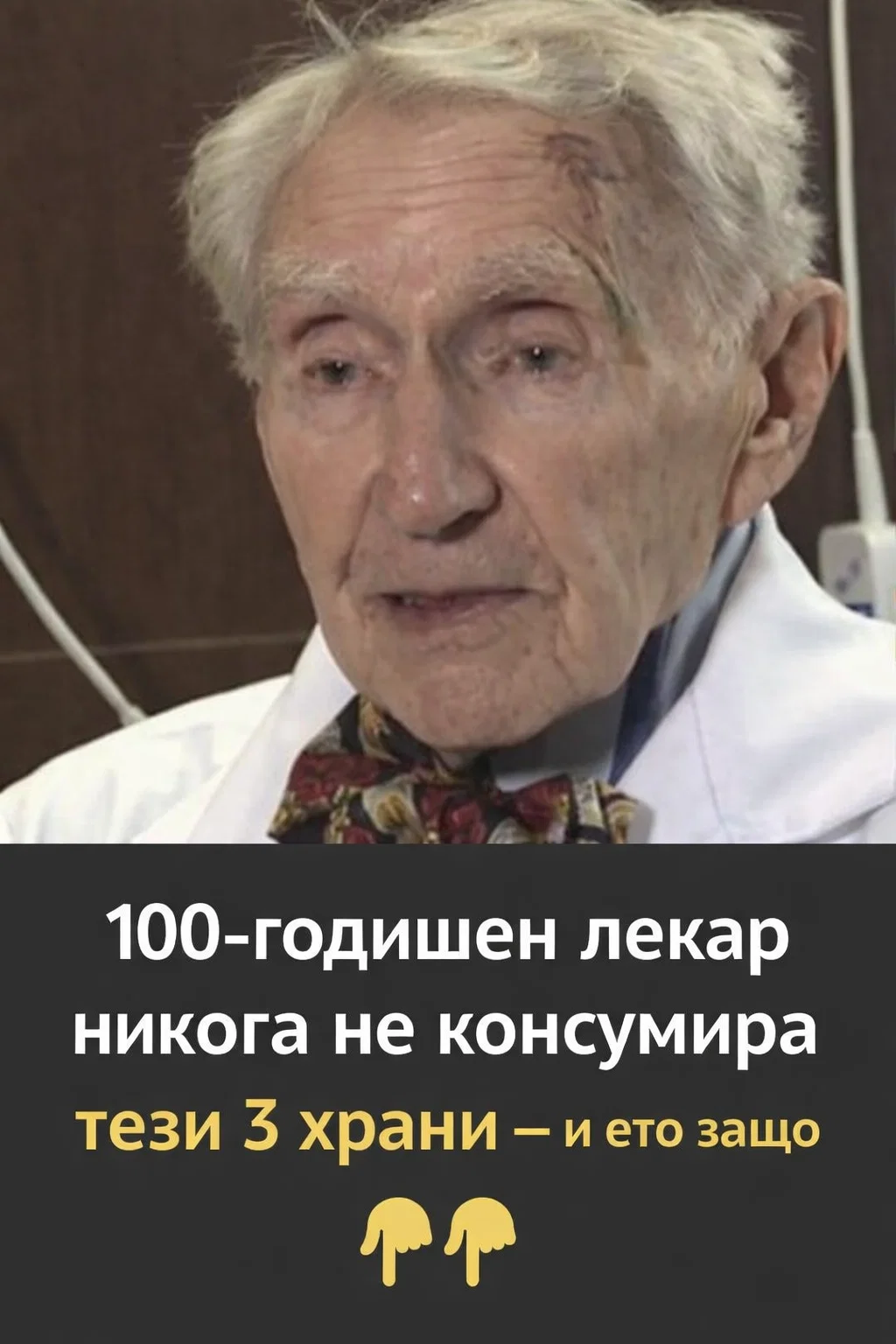 Лекар на 100 години разкри тайната си: има три храни, които никога не е включвал в менюто си – и именно това му е помогнало да стигне до тази възраст без лекарства и сериозни болести.