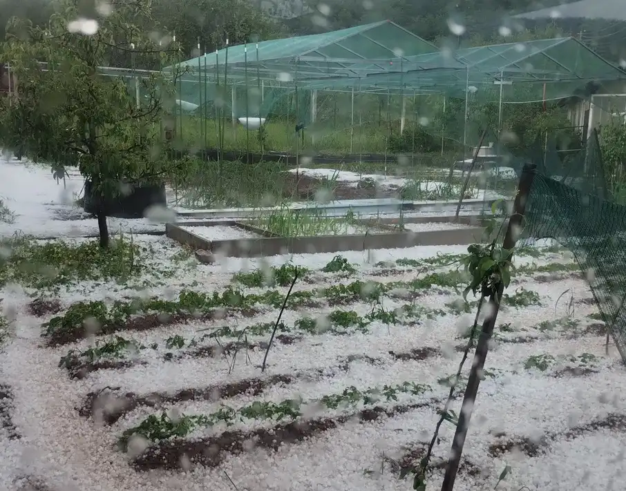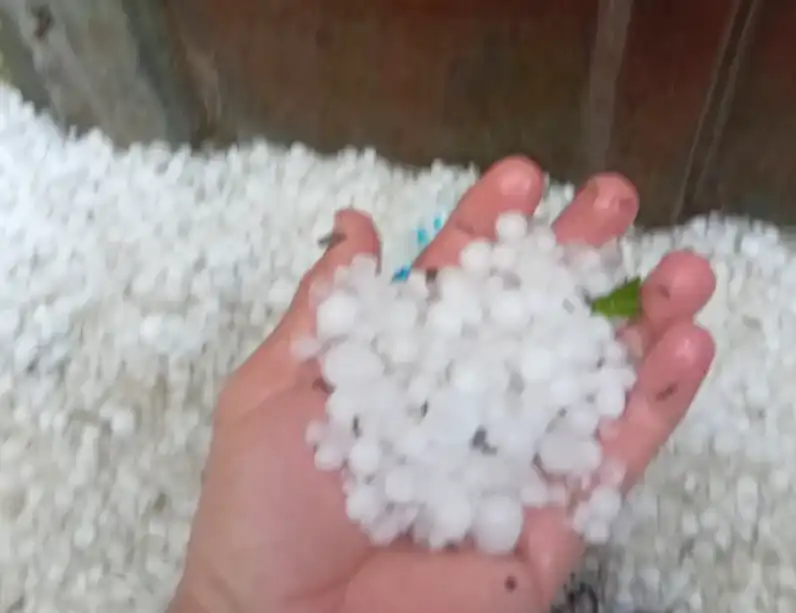 Метео Балканс разпространиха кадри от мястото, на които ясно се вижда интензитетът на явлението. Стихията не подмина и други части от Софийска област. Жителка на село Дреново, в подножието на Мала планина, сигнализира за 15-минутен интензивен град, при който земята побеляла, а щетите върху градинските насаждения вероятно са сериозни.