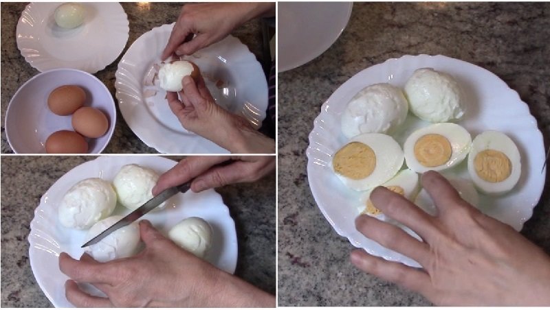 Сварете яйцата и ги почистете от черупката.