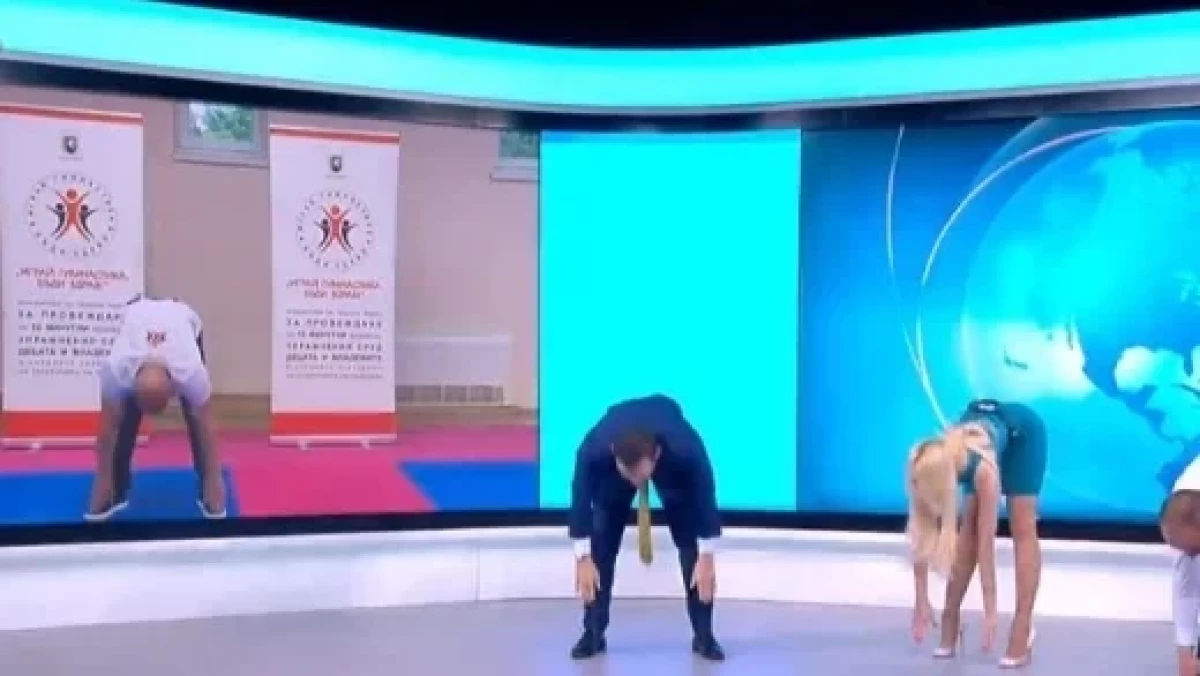 Още преди да е станало 7 ч. Керязов накара тримата водещи да правят физзарядка. Той ги изненада с най-различни упражнения, които телевизионерите с готовност се заеха да изпълняват.