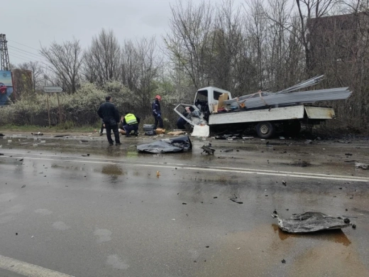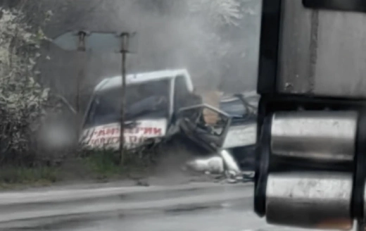 Ударът между двете возила е бил толкова зверски, че двигателят на бавареца е изхвърчал на пътя. Камиончето също е огънато много в предната си част.