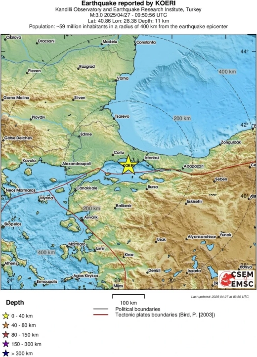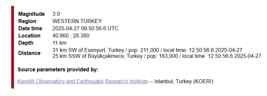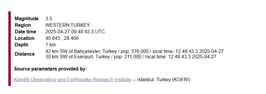 На 23 април 2025 г. силно земетресение с магнитуд 6,2 по скалата на Рихтер разтърси Истанбул и околните райони. Епицентърът на труса е бил в Мраморно море, на около 40 км югозападно от града, на дълбочина 10 км.