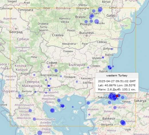 Регистрирани са два земни труса. Според информацията първият е усетен в 9:48 минути местно време и е бил с магнитуд от 3,5 по Рихтер.