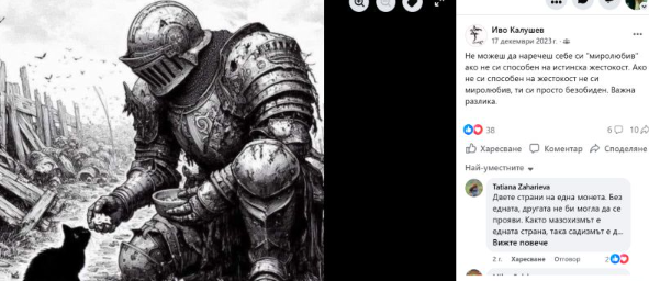 Тези думи е написал Ивайло Калушев в публикация във „Фейсбук“ от 17 декември 2023 г., видя „Труд news“. Към поста е прикачена снимка на мъж в рицарски доспехи, който храни малко коте – образ, съчетаващ сила и мекота, контраст, който днес звучи зловещо на фона на трагичните събития, разтърсили района на хижа „Петрохан“.