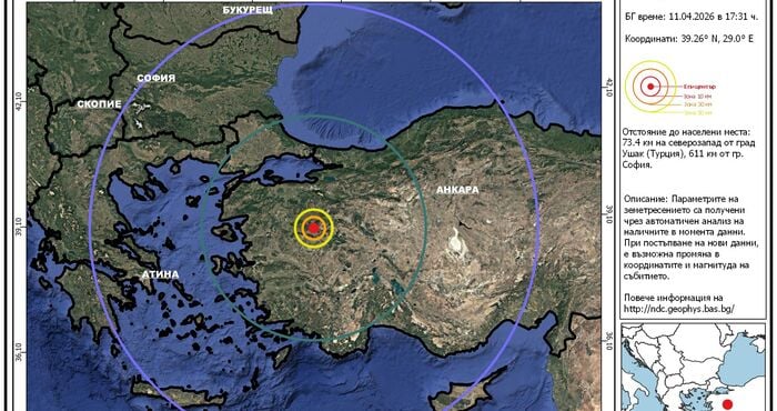 По данни на Националния сеизмологичен център към Национален институт по геофизика, геодезия и география – БАН той е бил регистриран в 17:31 ч.