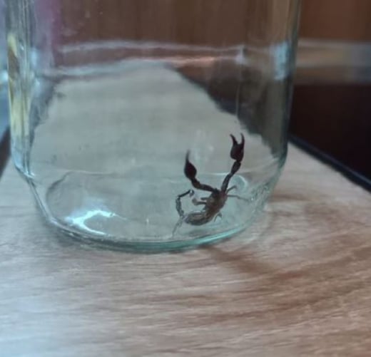„Нормално ли е да си намериш скорпион на 9 етаж?“, чуди се Красимир К. и допълва, че „находката“ била открита на стената на дивана. В крайна сметка скорпиончето се озовало в буркан, а за съдбата му след това яснота няма.