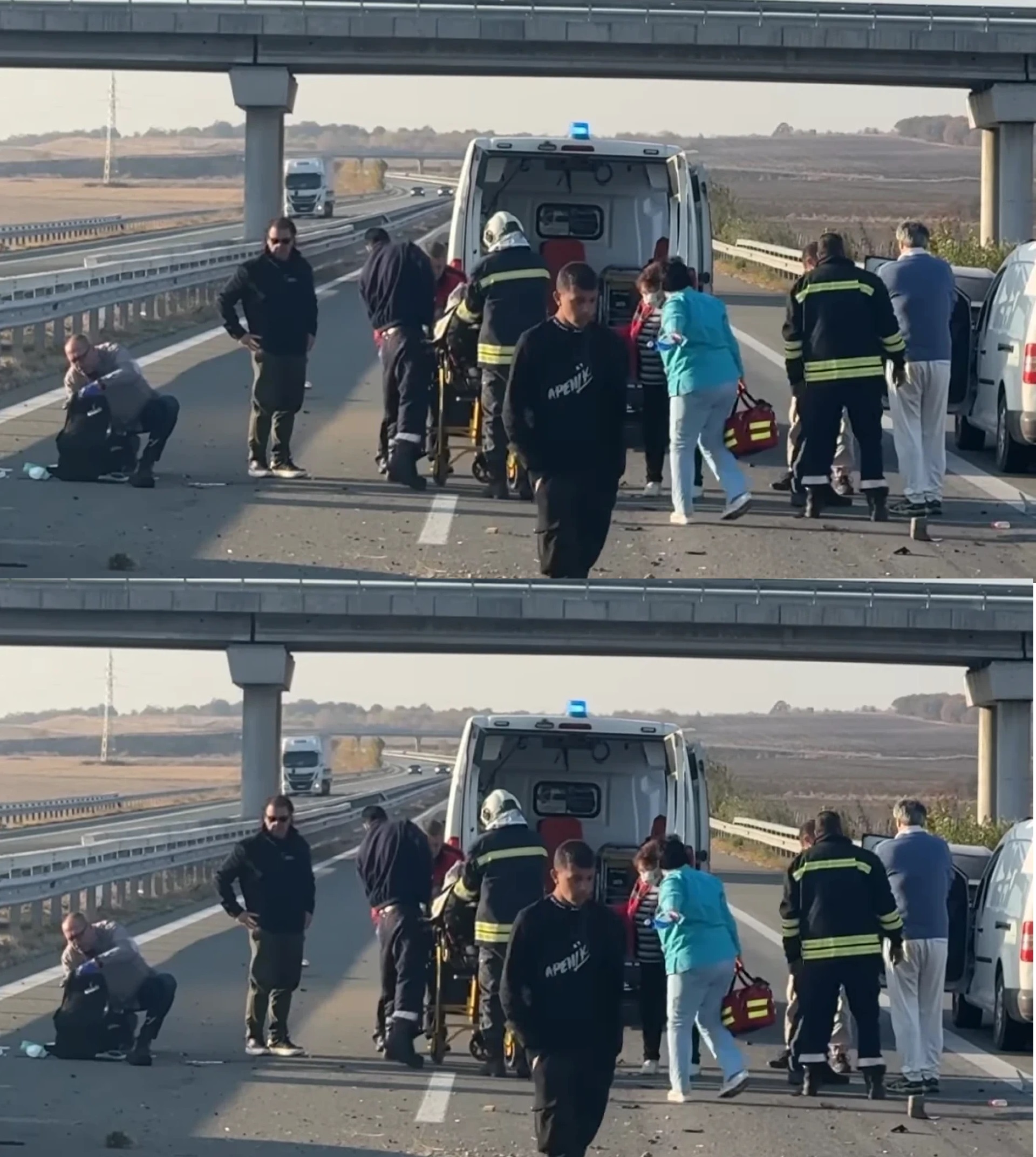 В момента се извършва оглед от оперативно-следствена група. Движението в участъка се регулира от екипи на „Пътна полиция“.